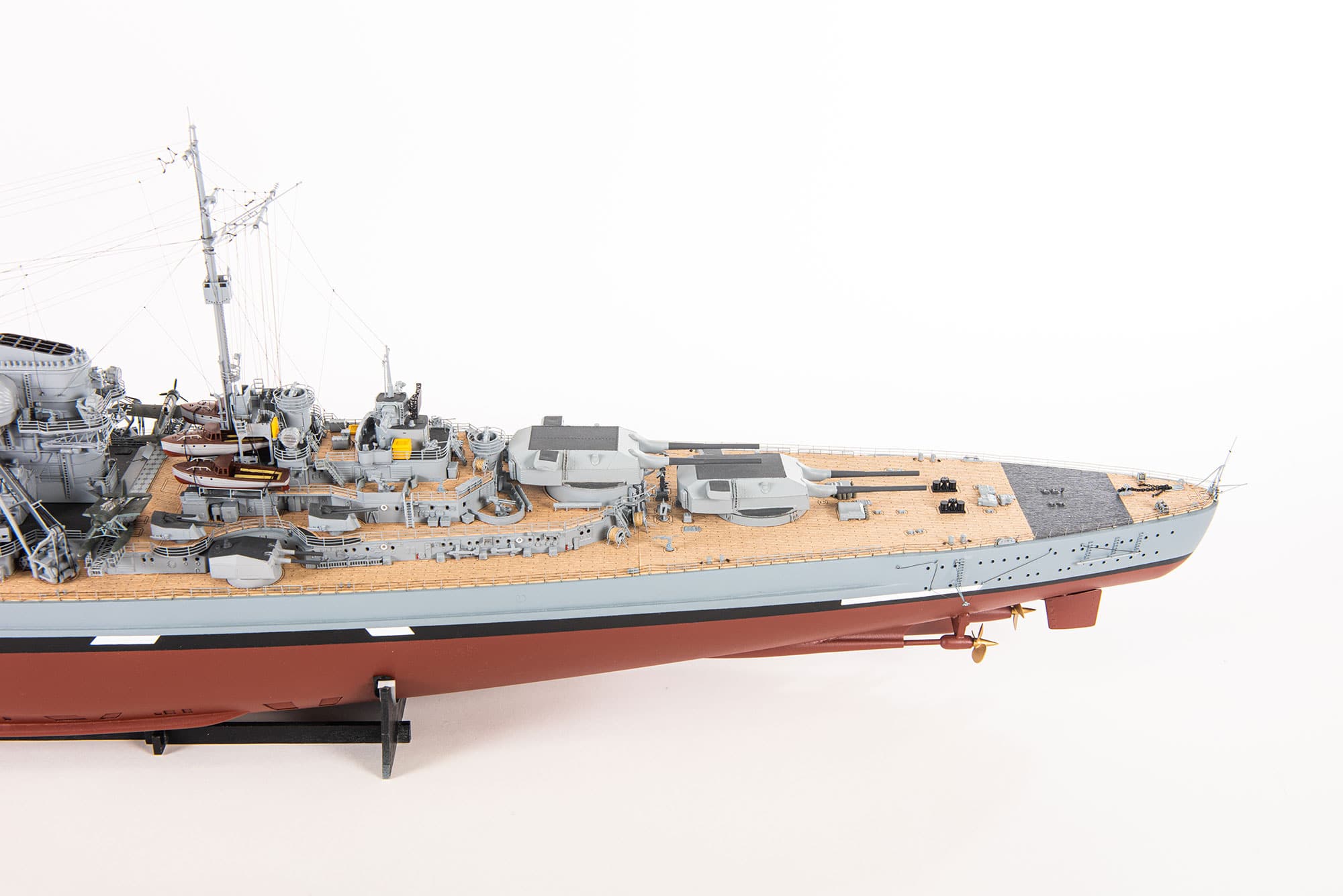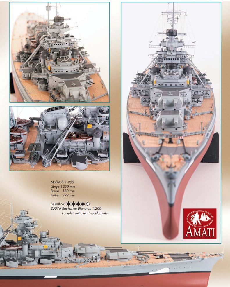 The Bismarck was a WWII German battleship, named in honor of 19th century chancellor Otto von Bismarck (1815-1898). She is famous for the sinking of the battlecruiser Hood and the subsequent hunt she was given which led to her destruction. Eponymous of the Bismarck class, the only other unit of the same class was the Tirpitz. SCALE 1:200