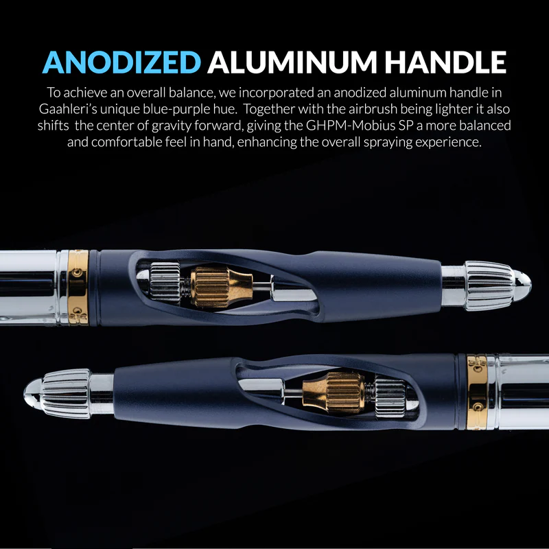 The GHPM-Mobius SP from GAAHLERI’s Premium Series is a high-performance dual-action airbrush featuring two interchangeable nozzles (0.3 mm and 0.5 mm) for greater versatility. This model is designed for precise detailing as well as broader coverage, making it ideal for modelers, artists, and hobbyists.