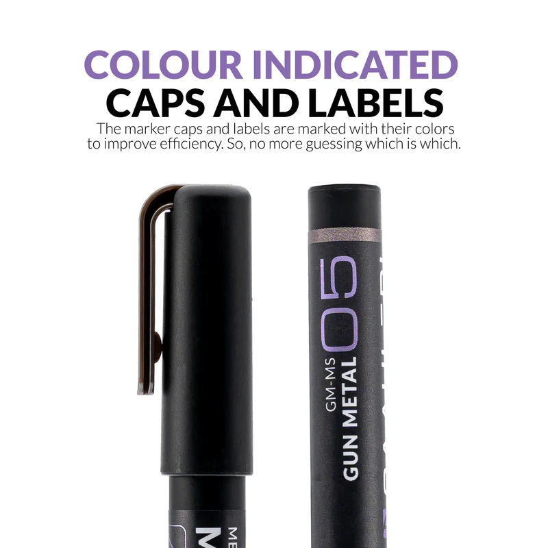 The Metallic Series Gun Metal Markers set from GAAHLERI includes 6 metallic paint markers specially formulated to deliver a realistic and vibrant aluminium finish. Easy to use, they allow you to quickly apply a smooth, shiny metallic coating to your scale models, miniatures, or creative projects.