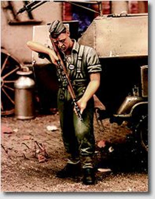 - GERMAN INFANTRYMAN CLEANING RIFLE - WWII