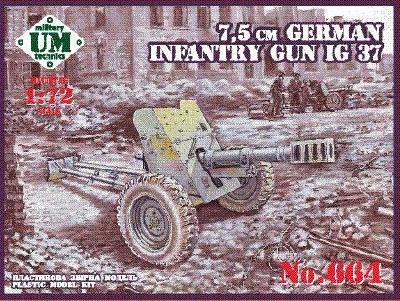 The 7.5 cm Infanteriegeschütz 37 (7.5 cm IG 37) was an infantry support gun, used by Germany, during World War II. The guns were originally designated 7.5 cm PaK 37. The IG 37s were manufactured, beginning in late 1944, from carriages of 3.7 cm Pak 36s (and the nearly identical Soviet 3.7 cm PaK 158(r)) and a barrel designed originally for the IG 42 infantry support gun. As an anti-tank weapon it used a hollow charge shell with 0.5 kg (1 lb 2 oz) of explosives to penetrate up to 85 mm (3.3 in) with a velocity of 395 m/s (1,300 ft/s). The first 84 guns were delivered in June 1944. By the end of the war 1,304 guns were operational. While the gun carriage was an old design, the gun itself was a new design created by Krupp; though the design had been shelved at the time of its conception. The gun had two distinctive features; first was the large four-baffle muzzle brake and the second was the vertical sliding-block breech that was considered unusual for a Krupp designed gun. The breech operated in a semi-automatic fashion; once the gun was fired the breech block would open and eject the spent casing and remained open to allow for rapid reloading. The breech would then be closed once the next round was loaded and the gun was then ready to fire. (Scale : 1/72e)- Brand: