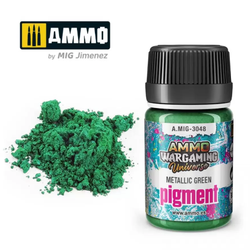 Le pigment Vert Métallique AMIG 3048 est un choix remarquable pour ajouter une touche de sophistication et de réalisme à vos modèles et dioramas. Sa teinte verte métallique offre une brillance subtile et une profondeur visuelle, permettant de créer des effets saisissants.