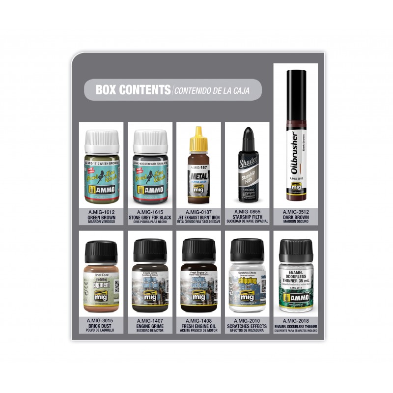 Cet ensemble contient les produits essentiels utilisés pour Weathering le légendaire Lancaster, ainsi que plusieurs de vos bombardiers préférés de la RAF utilisés pendant la Seconde Guerre mondiale. Grâce à la large gamme de produits polyvalents, vous pourrez simuler toutes sortes d'effets, y compris les lavages de panneaux, la décoloration, les fuites, les taches et toute la gamme d'effets communs à cet avion emblématique. Comprend à la fois des produits émail et acrylique, chacun choisi pour obtenir le résultat le plus réaliste.