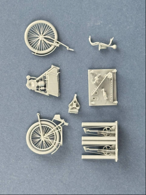en résine / impression 3D pour la structure principale (cadre, roues,