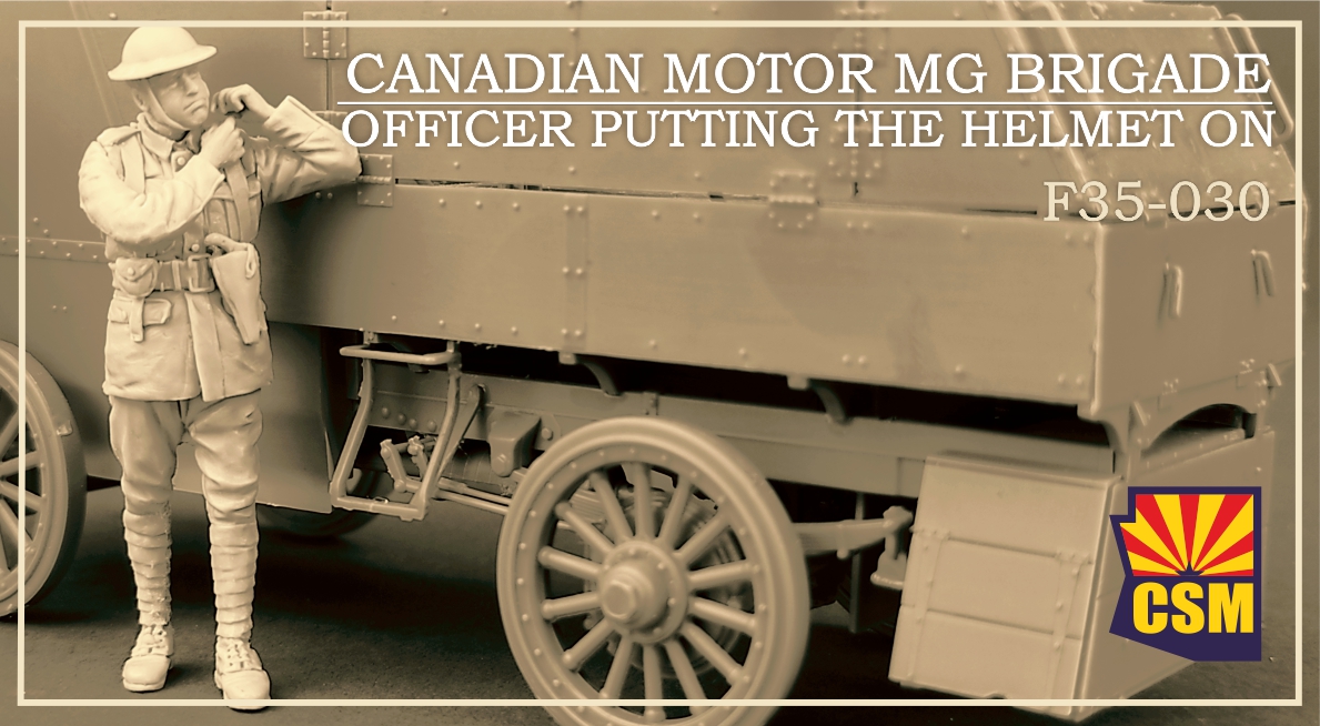 - Officier de la Canadian Motor MG Brigade mettant le casque