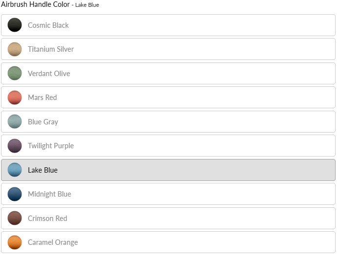 - Sur la couleur du corps de l'aérographe (la liste des couleurs est en photo)