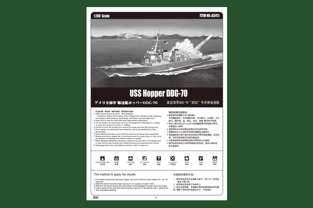 La maquette "USS Hopper DDG-70 83411" offre une reproduction détaillée du destroyer lance-missiles Aegis de classe Arleigh Burke de l'U.S. Navy. Désigné "Hopper" (DDG-70), ce navire de type I a débuté sa construction le 26 février 1995 et a été mis en service le 6 septembre 1997 à Pearl Harbor.