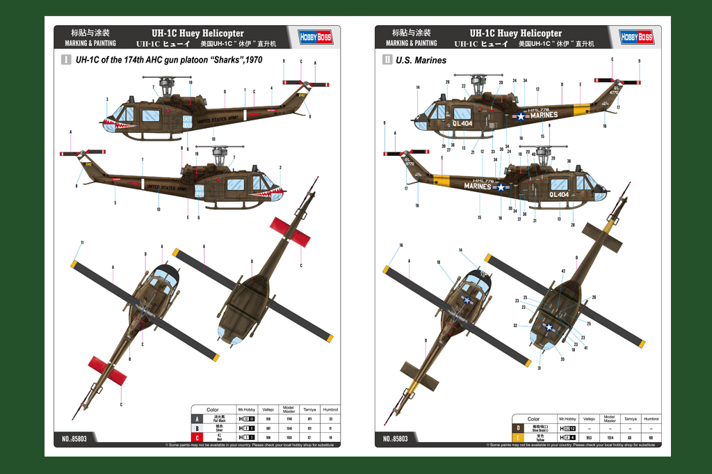 Le Bell UH-1 Iroquois, communément connu sous le nom de "Huey", est un hélicoptère militaire polyvalent, a été développé à partir des essais de l'armée américaine de 1955 avec le Bell Model 204. La désignation initiale de HU-1 (hélicoptère utilitaire) a conduit à son surnom, Huey. Il a été utilisé pour la première fois par l'armée en 1959 et est entré en production pour trois services en 1962 sous le nom d'UH-1. Les derniers ont été produits en 1976 avec plus de 16 000 fabriqués au total, dont environ 7 000 ont été utilisés pendant la guerre du Vietnam et célèbres pour leur utilisation pendant la guerre du Vietnam.