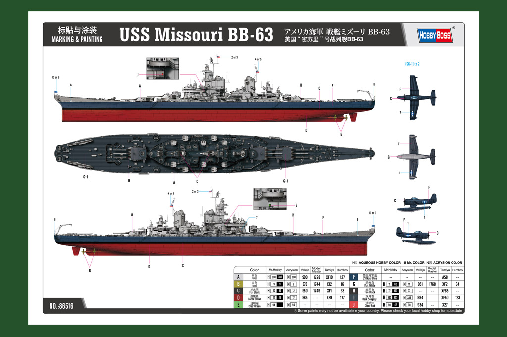 La maquette "USS Missouri BB-63 86516" offre une reproduction détaillée du célèbre cuirassé américain USS Missouri (BB-63). Avec une échelle de 1:350, cette maquette offre une représentation fidèle du navire de guerre emblématique de la Seconde Guerre mondiale.