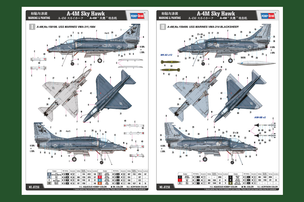 La maquette "A-4M Sky Hawk 87256" offre une reproduction exceptionnelle du célèbre avion de chasse A-4M Sky Hawk. Cette maquette à l'échelle 1:72 est basée sur le design de Douglas, en réponse à un appel de l'US Navy pour un avion d'attaque à réaction destiné à remplacer le vieillissant A-1 Skyraider. Douglas a privilégié un design minimaliste en termes de taille, de poids et de complexité, résultant en un avion pesant seulement la moitié de la spécification de poids de l'US Navy. Son aile compacte ne nécessitait pas d'être repliée pour le stockage sur porte-avions.