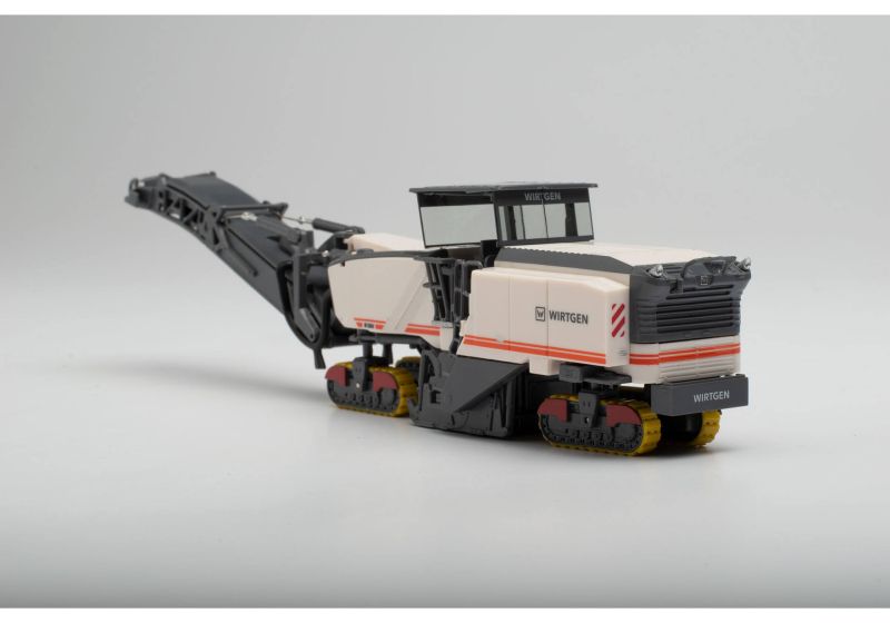 Après plusieurs variantes de transport et différentes décorations, la fraiseuse d'asphalte Wirtgen est désormais disponible sans semi-remorque dans la couleur maison de Wirtgen. Une partie du toit repliée pour représenter la variante de transport est incluse.