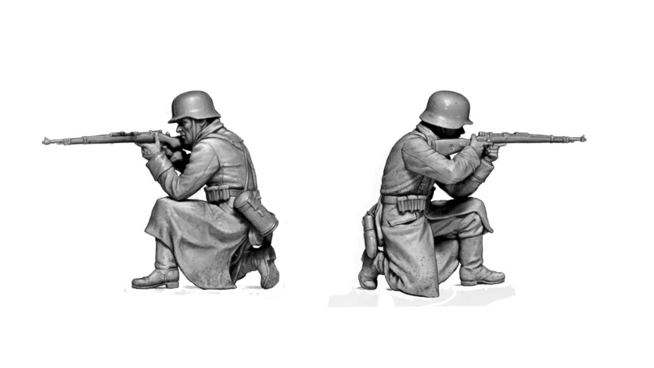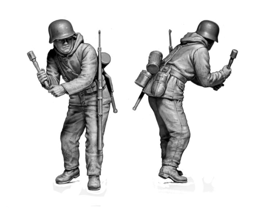 fantassins dans des postures réalistes, équipés pour les conditions hivernales