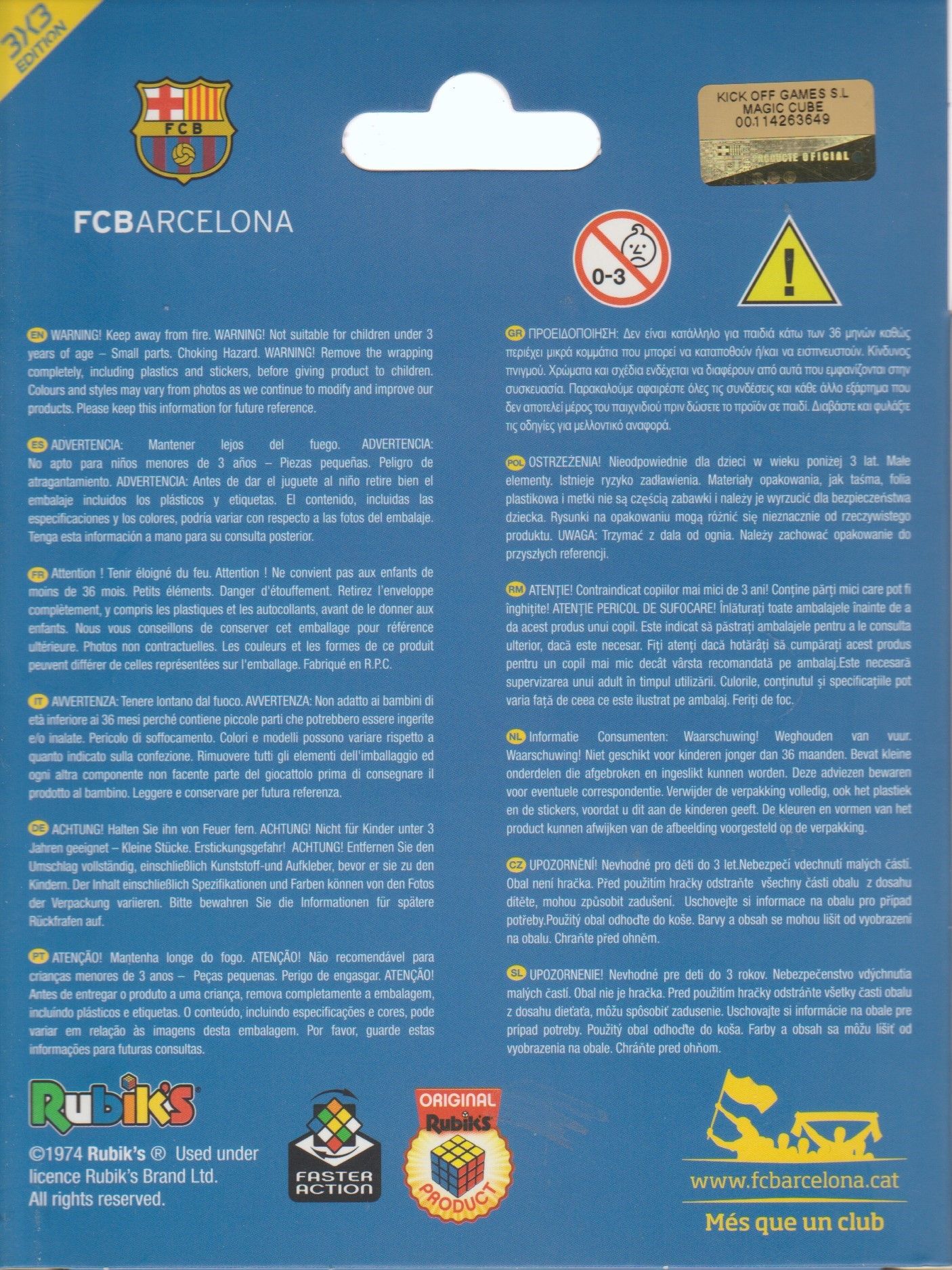 Le Rubik's Cube fait son grand retour. Dans cette version, le Rubik's Cube se montre sous les couleurs du FC Barcelona. Votre enfant développera des stratégies pour reformer les 6 faces du cube aux couleurs de son club de foot espagnol préféré. Tactique et motricité seront très sollicitées ici.