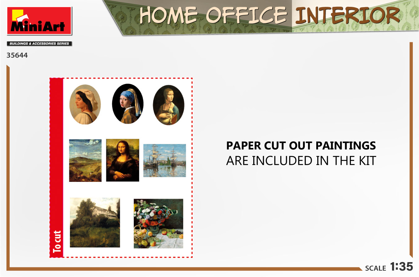 - Le kit contient des modèles de meubles, téléphone, radio et tableaux encadrés.