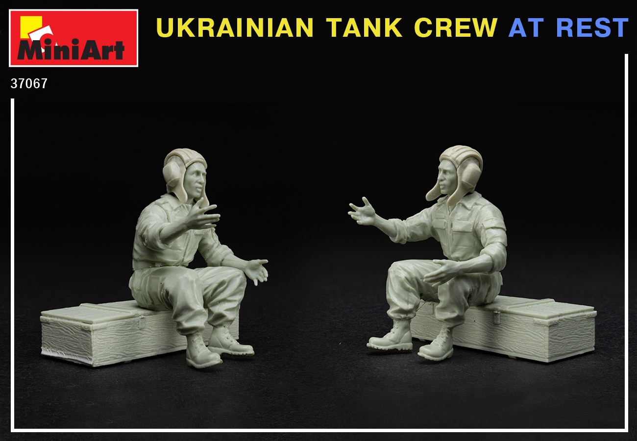 Figurines militaires Miniart (plastiques) représentant un équipage de char ukrainien au repos (Echelle 1/35). Epoque : XXe siècle.- Marque :