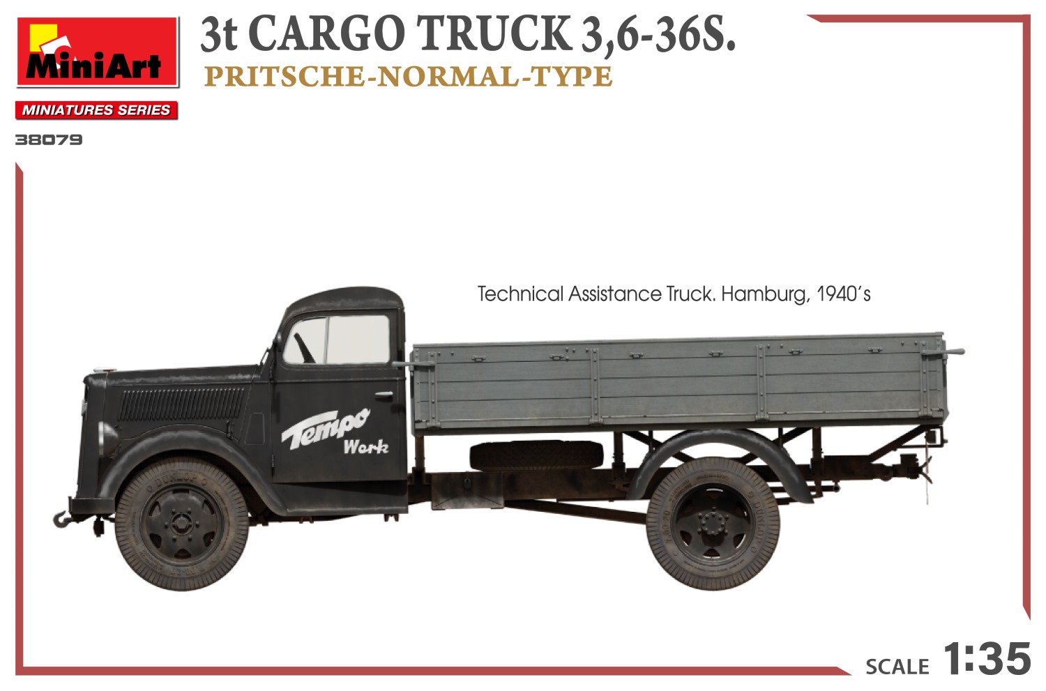 Découvrez la polyvalence du Camion de Charge 3t 3,6-36S. Type Pritsche-Normal avec ce kit de maquette en plastique hautement détaillé. Ce kit comprend un modèle détaillé du camion de charge, méticuleusement recréé à l'échelle 1:35, offrant aux passionnés une représentation authentique de ce véhicule militaire essentiel.