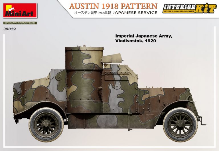 Taille de la boîte : 386x240x60 mm Kit plastique non assemblé à l'échelle 1/35ème comprenant les éléments pour assembler une automitrailleuse blindée Austin 1918, version Japonnaise. Détails des compartiments internes :- Tourelle, compartiment de l'équipage et compartiment moteur.