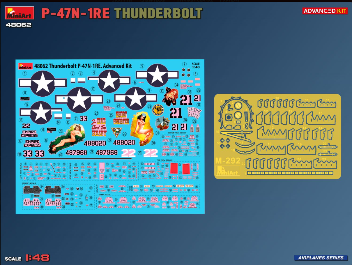 La référence MINI48062 – P-47N-1RE Thunderbolt, Advanced Kit propose la reproduction à l’échelle 1/48 de la version P-47N-1RE du célèbre chasseur américain Republic P-47 Thunderbolt.