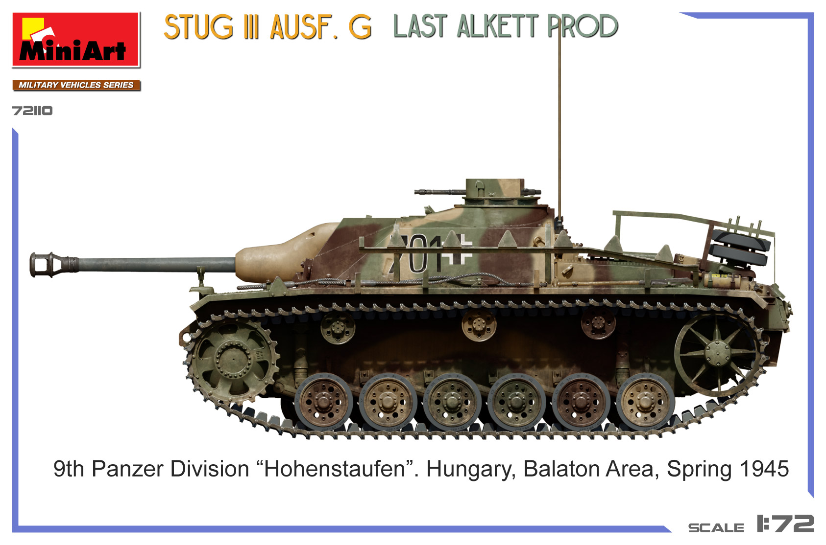 Cette maquette représente le célèbre StuG III Ausf. G, dans sa version issue de la dernière production de l’usine Alkett, l’un des principaux producteurs de ce chasseur de chars allemand durant la Seconde Guerre mondiale.