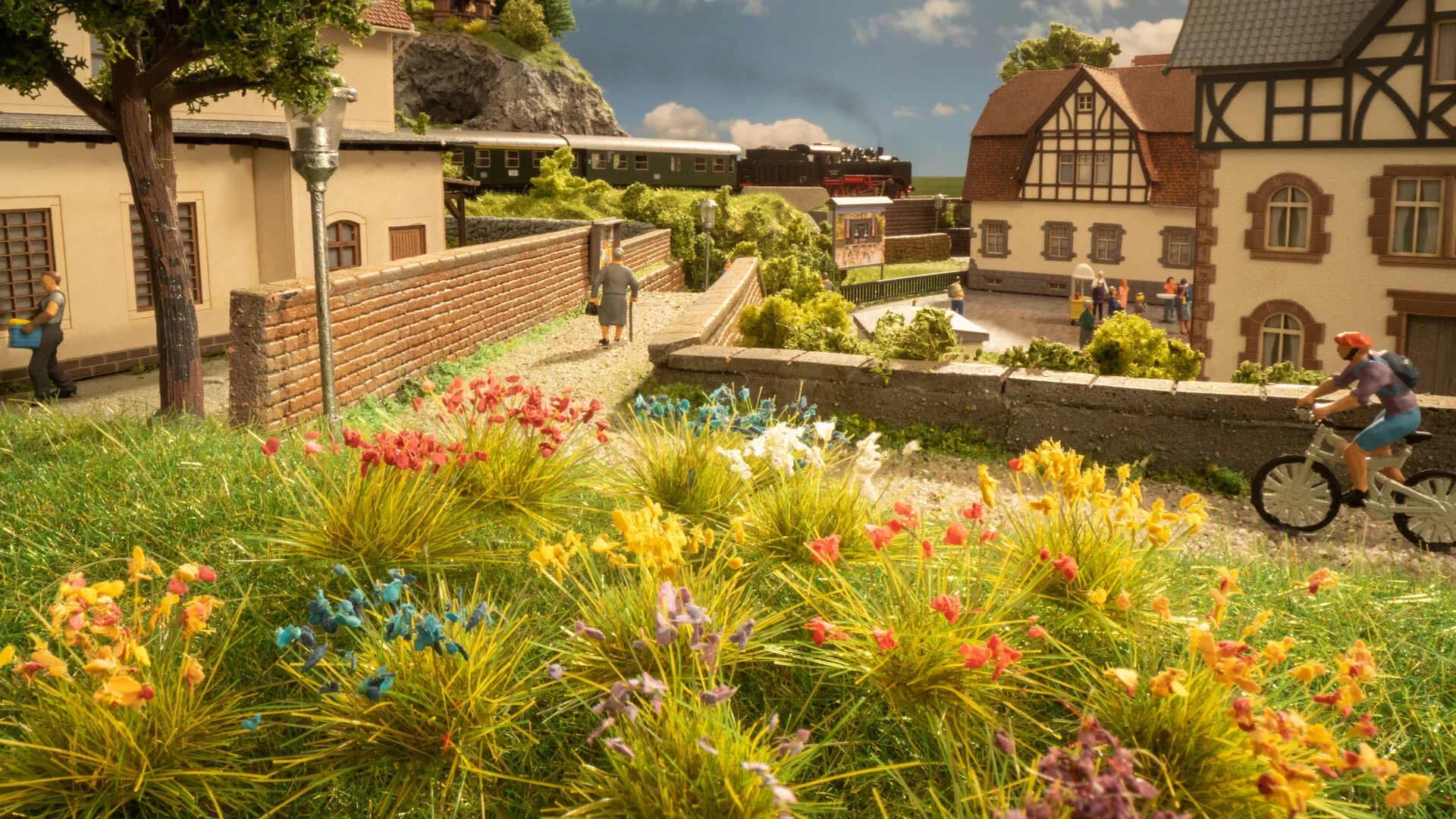 fixées dans le paysage modèle avec une goutte d'adhésif. Nous vous recommandons