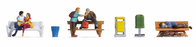 Description : Le set de figurines "People on Benches" pour le modèle réduit à l'échelle H0 contient cinq personnes, un chien, trois poubelles différentes et trois bancs. Les scènes de parc en particulier peuvent être conçues de manière réaliste avec cet ensemble. Un couple est assis ensemble sur un banc tandis que deux jeunes hommes discutent à proximité. Tandis que l'homme avec un chapeau est assis sur le dossier du banc avec son sac à dos devant lui, l'autre appuie une jambe sur le banc et porte son sac à dos. Un homme sans-abri dort également sur un banc. Tous ses biens sont sur une couverture sous le banc. Son chien a également trouvé une place ici. Malheureusement, de nombreuses personnes sont encore touchées par le sans-abrisme aujourd'hui et pour cette raison doivent vivre dans la rue. Grâce aux figurines de modèle de NOCH, vous pouvez désormais recréer cet aspect de la réalité dans un modèle et représenter toutes les facettes de la réalité sur votre maquette.