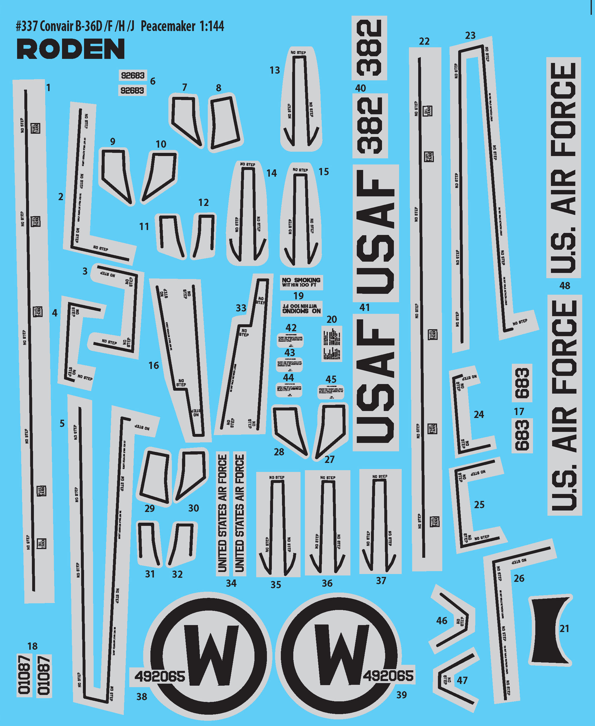 Introduit à l'époque où les avions à réaction arrivent massivement dans les forces aériennes, le B-36, avec ses six moteurs à pistons et son aile droite, est technologiquement dépassé avant même sa mise en service. Les premiers appareils, B-36A et B, ont une vitesse de croisière d'environ 350 km/h alors que le B-47 Stratojet à réaction, qui vole en , atteint plus de 900 km/h. Toutefois, son plafond opérationnel de plus de 12 000 m doit lui permettre de rester hors de portée des avions de chasse ennemis. À partir du B-36D, afin de réduire la course au décollage et d'augmenter la vitesse maximale, les B-36 se voient dotés de quatre turboréacteurs additionnels placés dans des nacelles sous les ailes. Cependant, à partir de 1955, ils commencent à être remplacés par les Boeing B-52, à réaction et à voilure en flèche, et les derniers sont retirés en 1959.- Marque :
