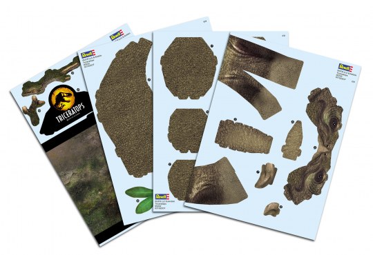 - Puzzle 3D du tricératops de la trilogie cinématographique Jurassic World avec plaque de diorama