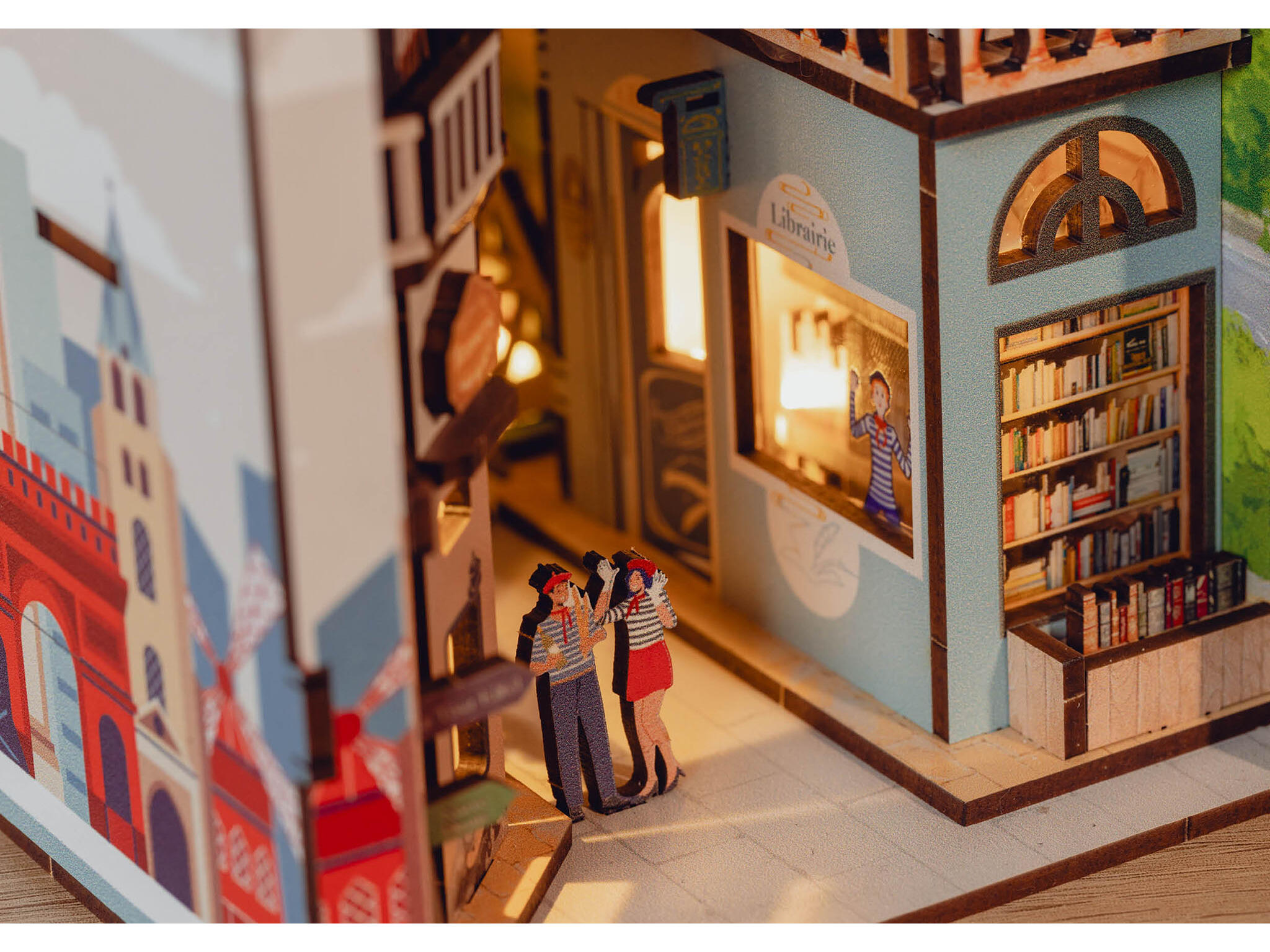 Découvre la magie dans ta bibliothèque : avec nos Book Nooks faciles à assembler, tu peux créer des mondes miniatures fascinants qui confèrent une atmosphère enchanteresse à toute collection de livres ! Le système d'assemblage précis offre un grand plaisir de construction avec une garantie de succès ! Les pièces en bois imprimées de haute qualité et découpées au laser ainsi que l'éclairage d'ambiance LED font briller l'ouvrage. Piles non incluses ! La colle à bois est nécessaire pour les petits détails. Non inclus.