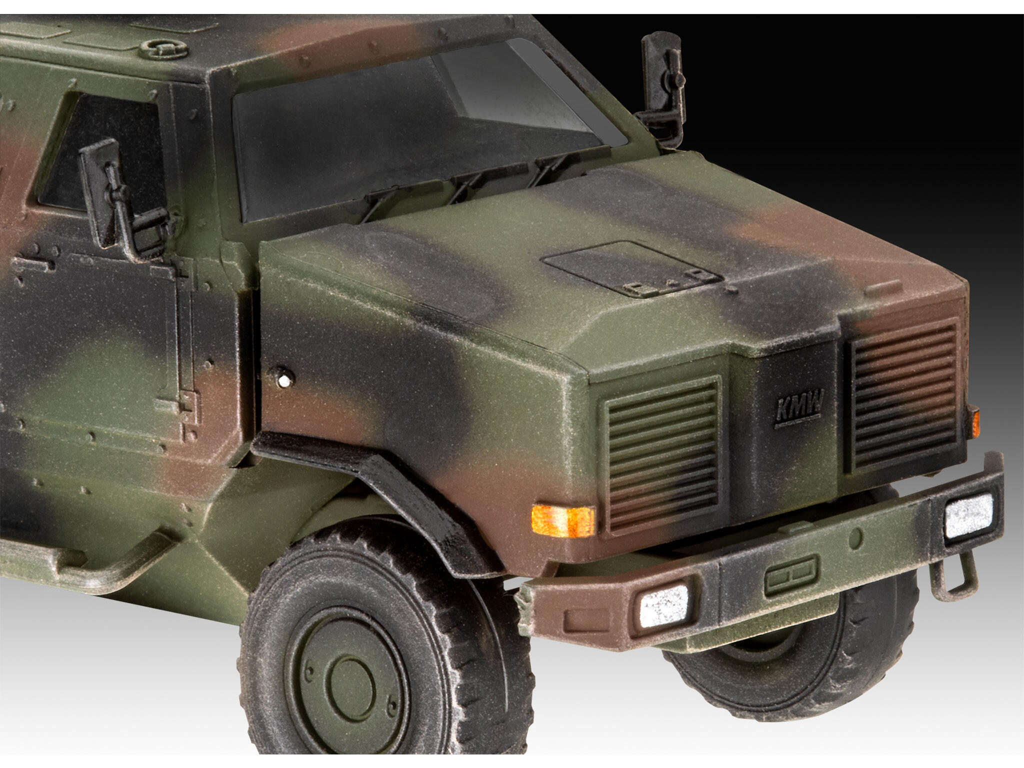 Le véhicule de transport tout terrain (ATF) Dingo est un véhicule blindé à roues, armé et aéroporté, destiné aux missions de patrouille et de reconnaissance. Il est utilisé en Allemagne, en Autriche, en Belgique et au Luxembourg. Le kit ATF Dingo 1 est un modèle très détaillé qui convient parfaitement aux modélistes expérimentés. Il comporte 65 pièces et est autorisé à partir de 12 ans.