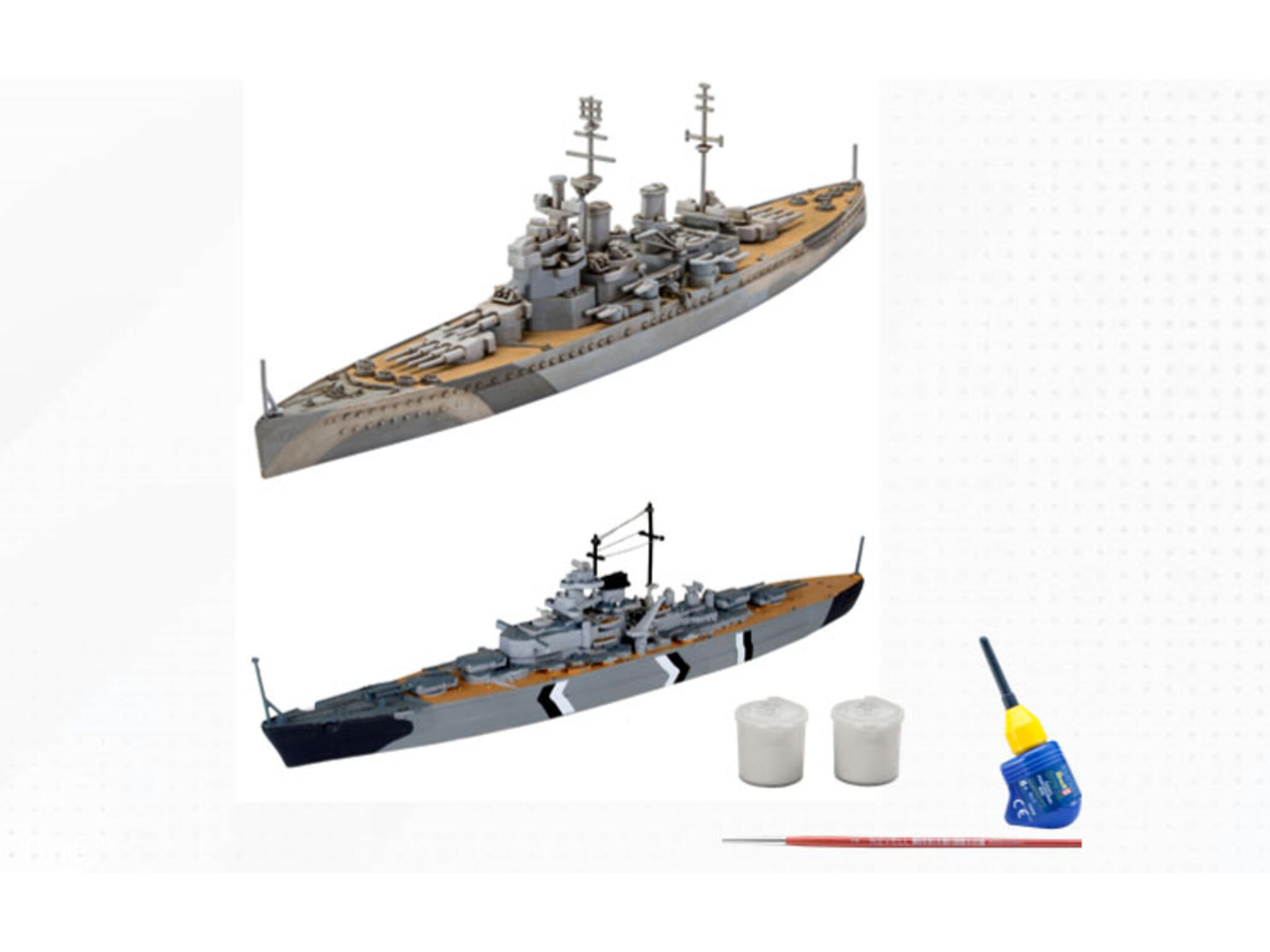 Kit de modélisme en plastique (non assemblé) du dernier combat du « Bismarck » contre le « HMS King of George V » sous forme de coffret cadeau à l'échelle 1:1200 (niveau 3).