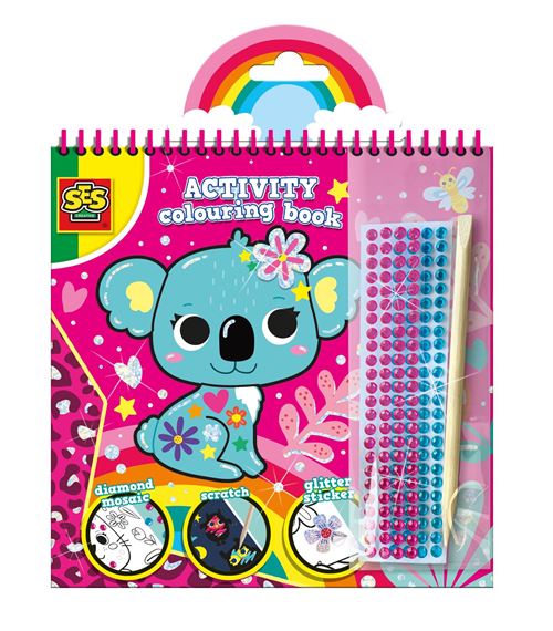 Ce livre de coloriage est bien plus qu’un simple livre de coloriage. Il s’agit d’un livre de coloriage et d’activités tout-en-un avec des animaux adorables. En plus du coloriage, tu peux aussi faire du grattage, de la peinture au diamant, de la mosaïque et du collage avec de super autocollants à paillettes.