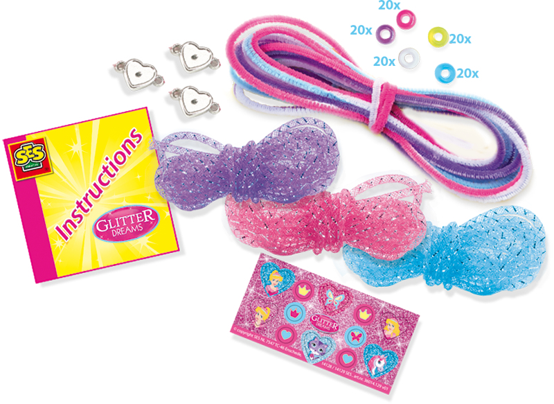 Avis aux filles ! SES vous propose un nouveau kit pour réaliser des bracelets à paillettes ! Avec les chenilles et les fils pailletés, tu peux toi-même créer les plus beaux des bracelets. Tu peux utiliser les fils et les chenilles de tout un tas de manières différentes. Laçage, tressage, nouage, à toi d’essayer ! Mélange et assemble les différentes couleurs et perles, ajoute des bijoux et deviens la star !