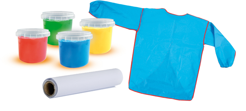 Ce kit SES My First contient tout ce dont les jeunes enfants ont besoin afin de se familiariser avec la peinture au doigt. Enfile le tablier, déroule le papier et tu peux commencer à peindre. Utilisation sans danger pour les enfants âgés de 1 an et plus.