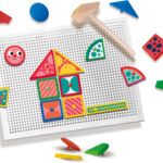 pour les tout-petits. Tape sur les formes en plastique sur le plateau et crée