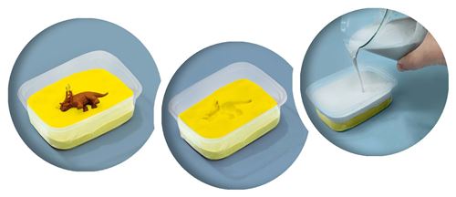 Est-ce que tu as une âme d’archéologue ? Grâce à ce kit, tu peux créer tes propres fossiles de dinosaures. Cache les fossiles dans le bac à sable et déterre-les comme un véritable archéologue avec tes amis.