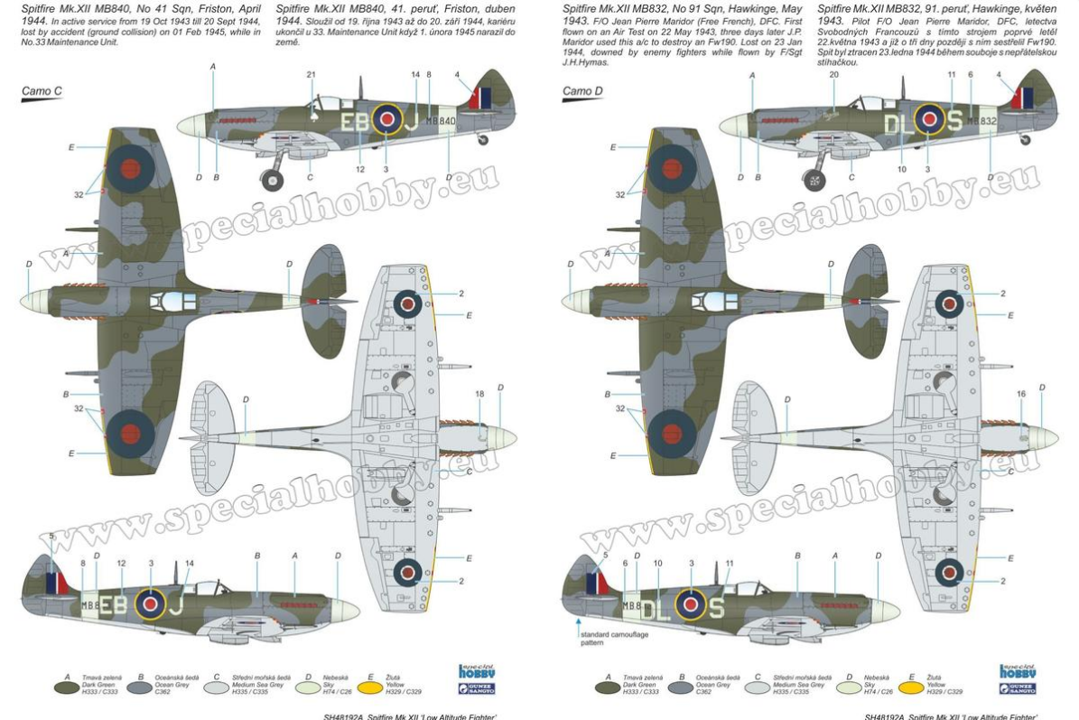 • Décalcomanies pour quatre Spitfire différents et trois bombes V-1 différentes