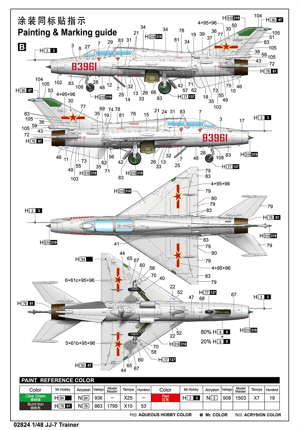 Description : La maquette JJ-7 Trainer 02824 offre une représentation fidèle de cet avion d'entraînement à double siège utilisé par plusieurs forces aériennes. Basée sur le design du chasseur J-7B, cette maquette présente un cockpit tandem à deux places, offrant une expérience réaliste pour les pilotes en formation.