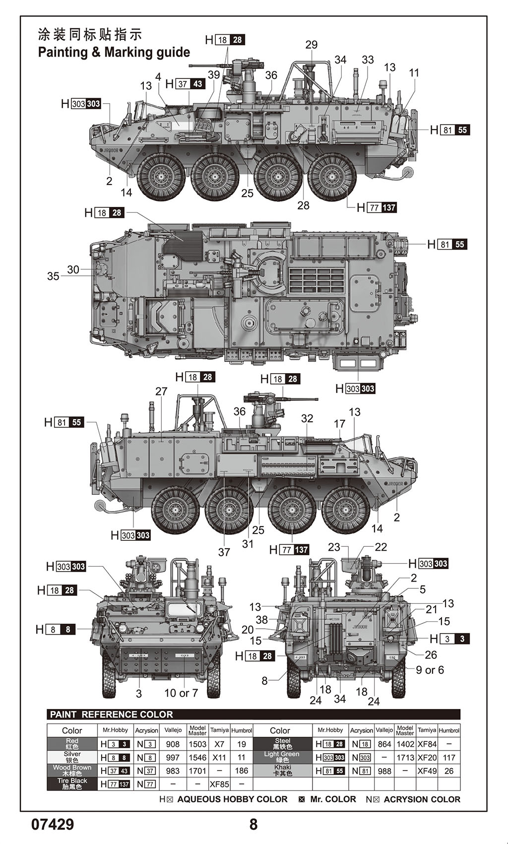 - Reproduction fidèle du M1135 Stryker NBC RV à l'échelle 1:72.