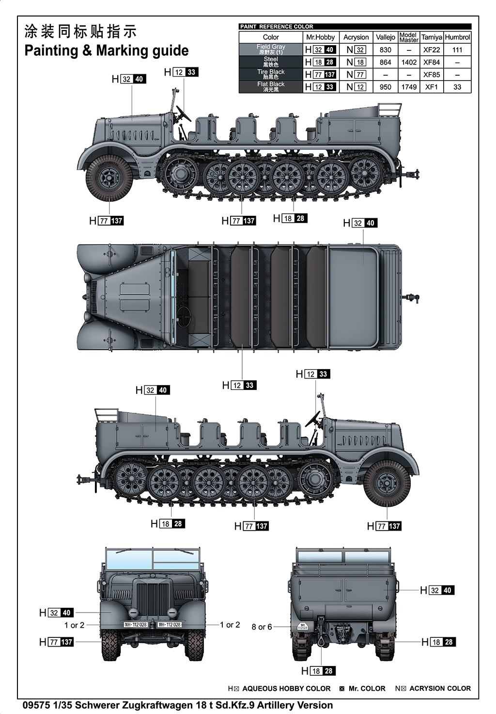 - Schwerer Zugkraftwagen 18 t Sd.Kfz.9 Artillery Version in 1:35